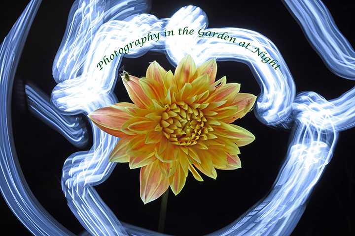 This photo was taken in my garden in total darkness. Two of the most difficult things about taking this picture: 1. Keeping the bugs off of me and 2. Being careful not to touch anything in the garden during the exposure. I keep a notebook close at hand and always jot down new ideas.